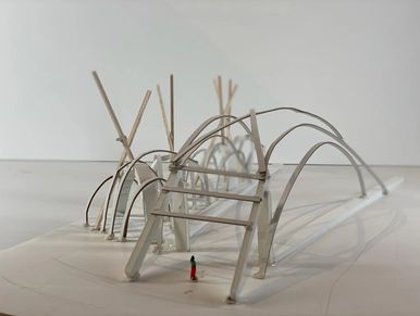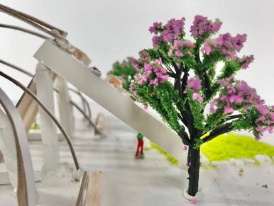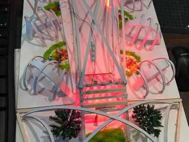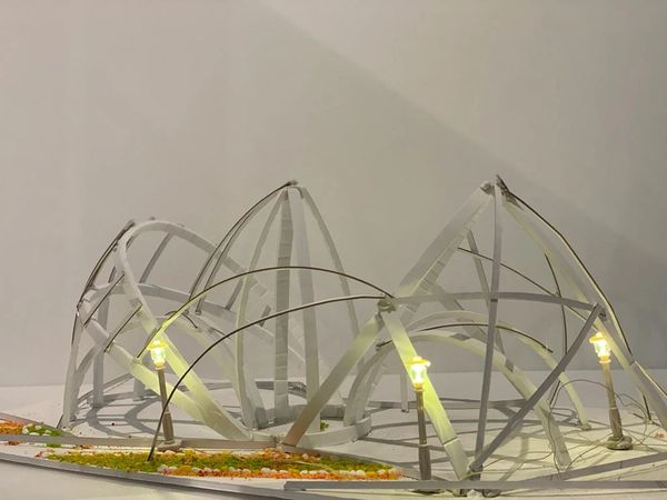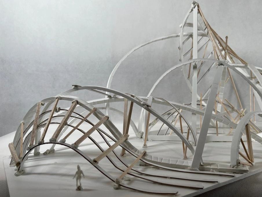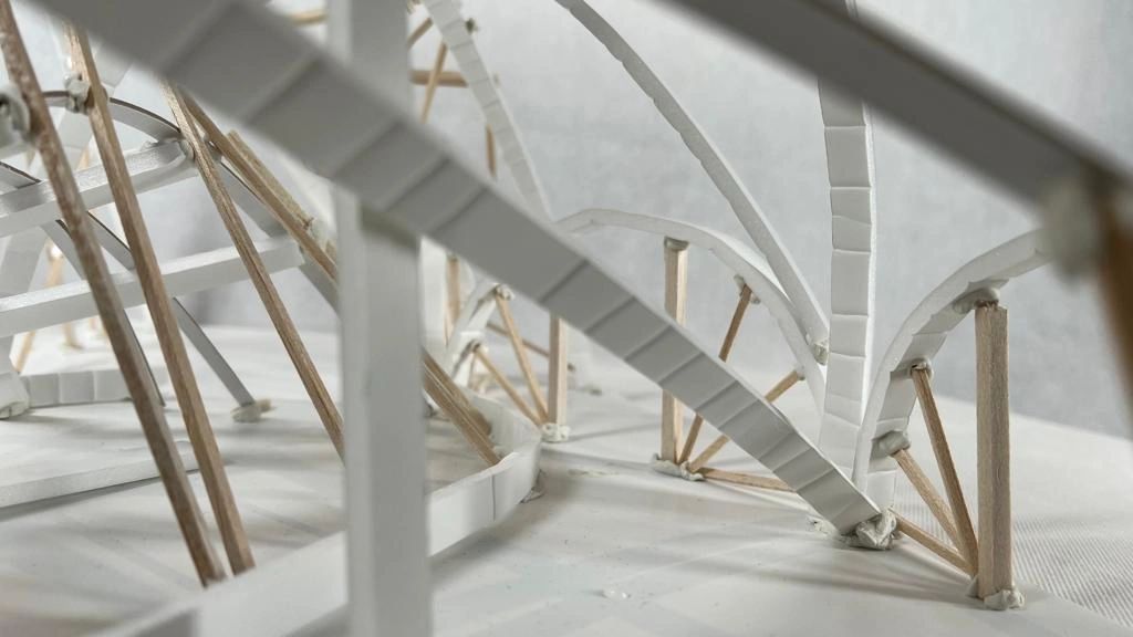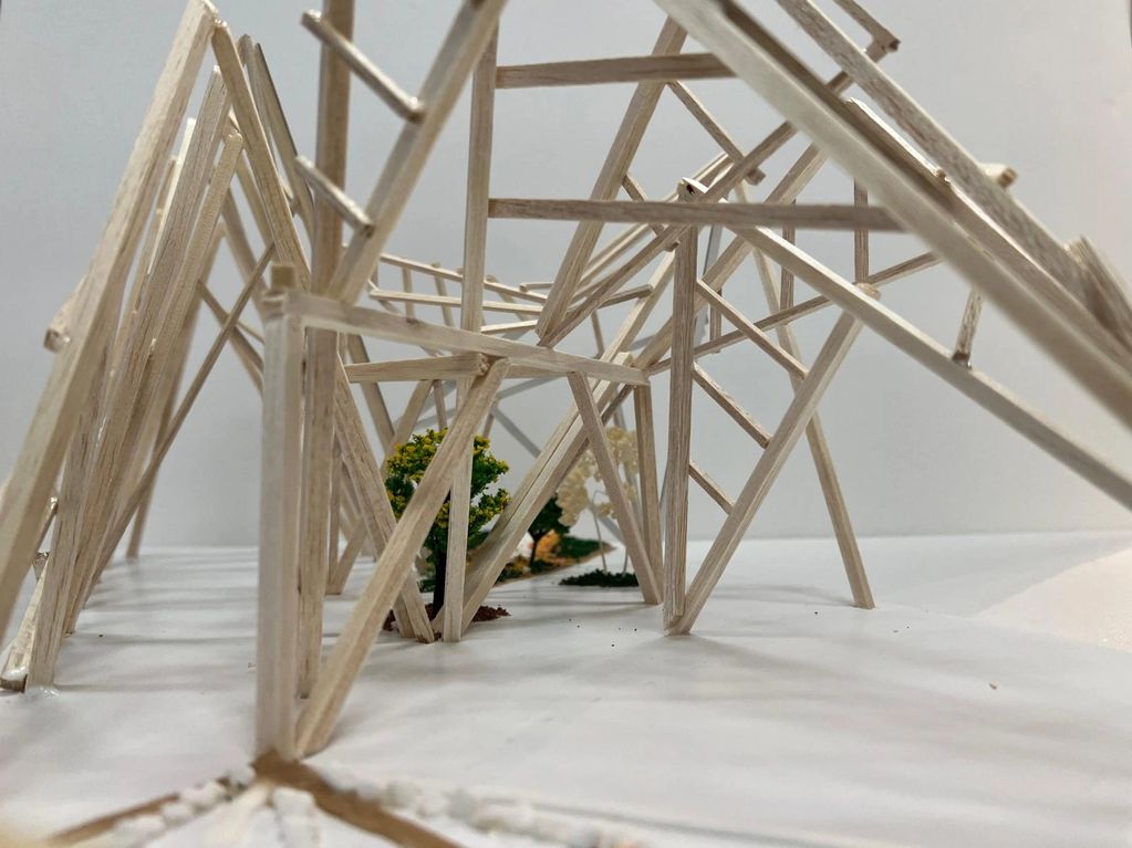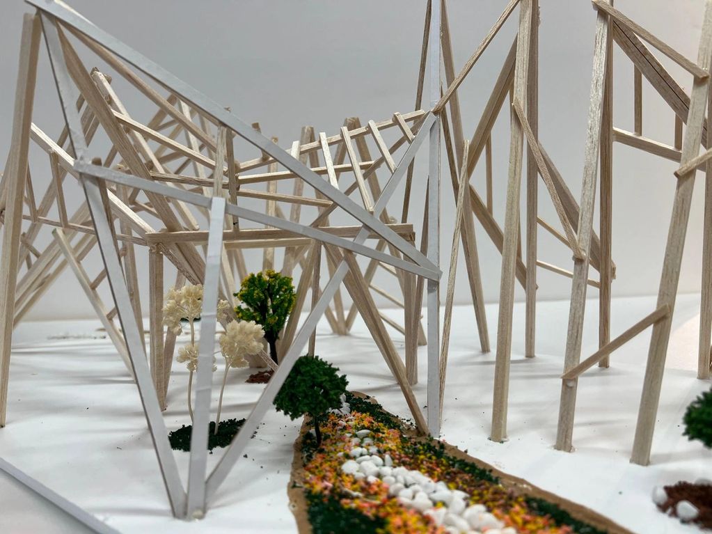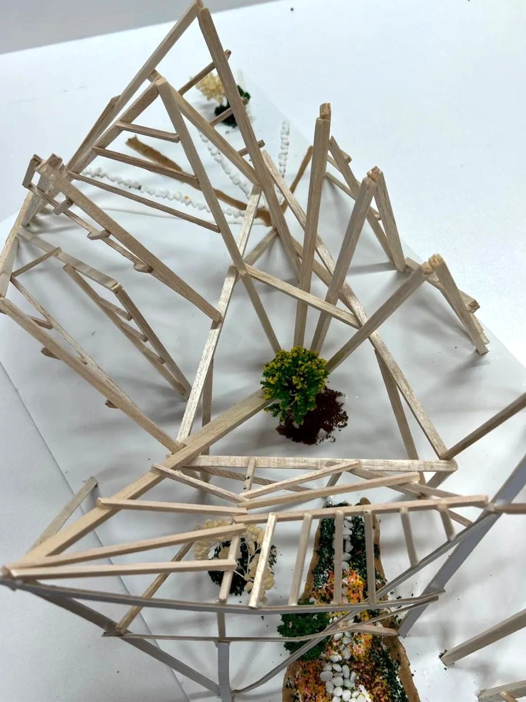 I explored innovative structural forms, integrating triangular wooden frameworks inspired by the architectural principles of traditional Japanese houses.